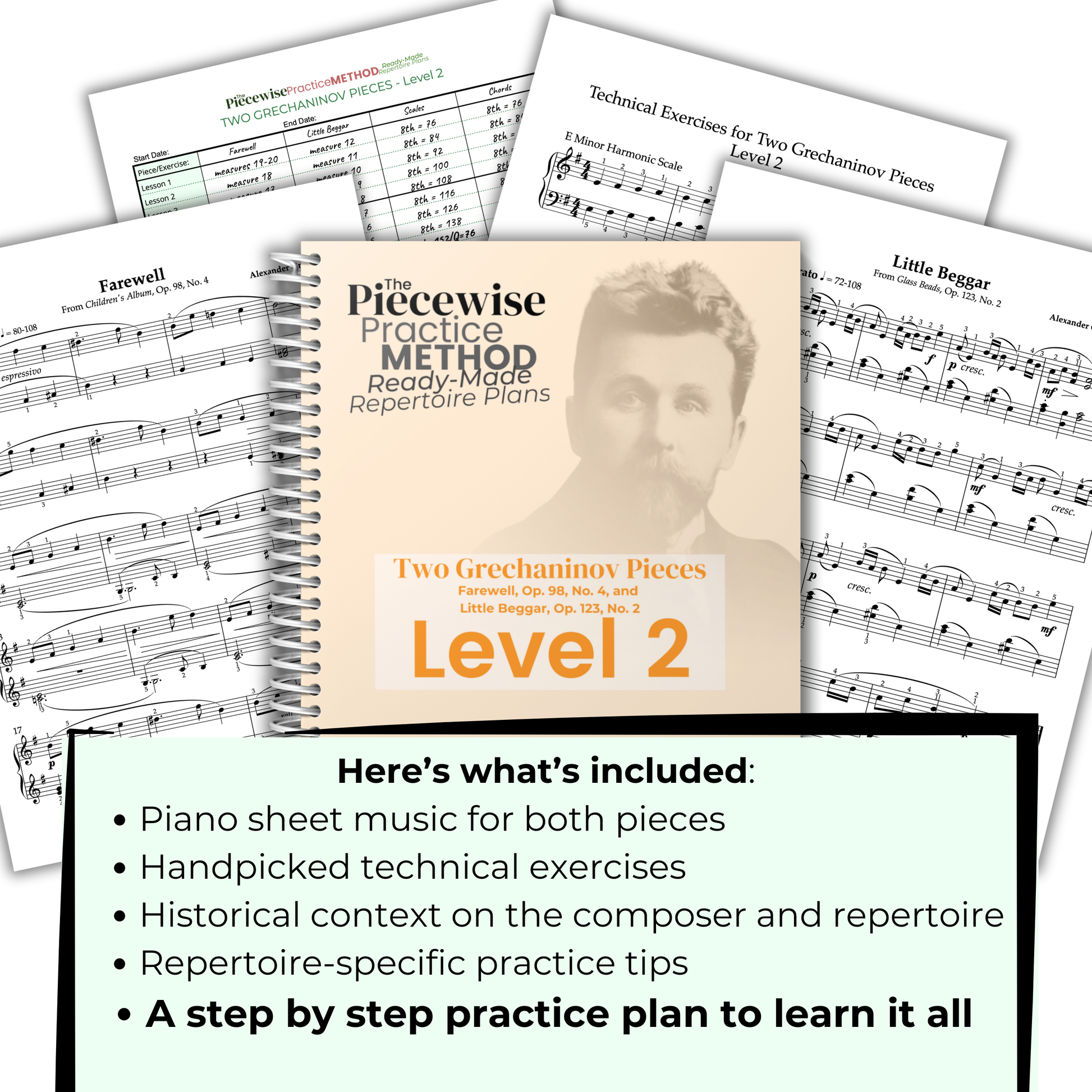 Grechaninov’s piano pieces are lyrical, heartfelt, and full of character, ideal for adult pianists looking to grow musically while reinforcing essential fundamentals. These two short works balance tenderness and playfulness, making every practice session both meaningful and fun.