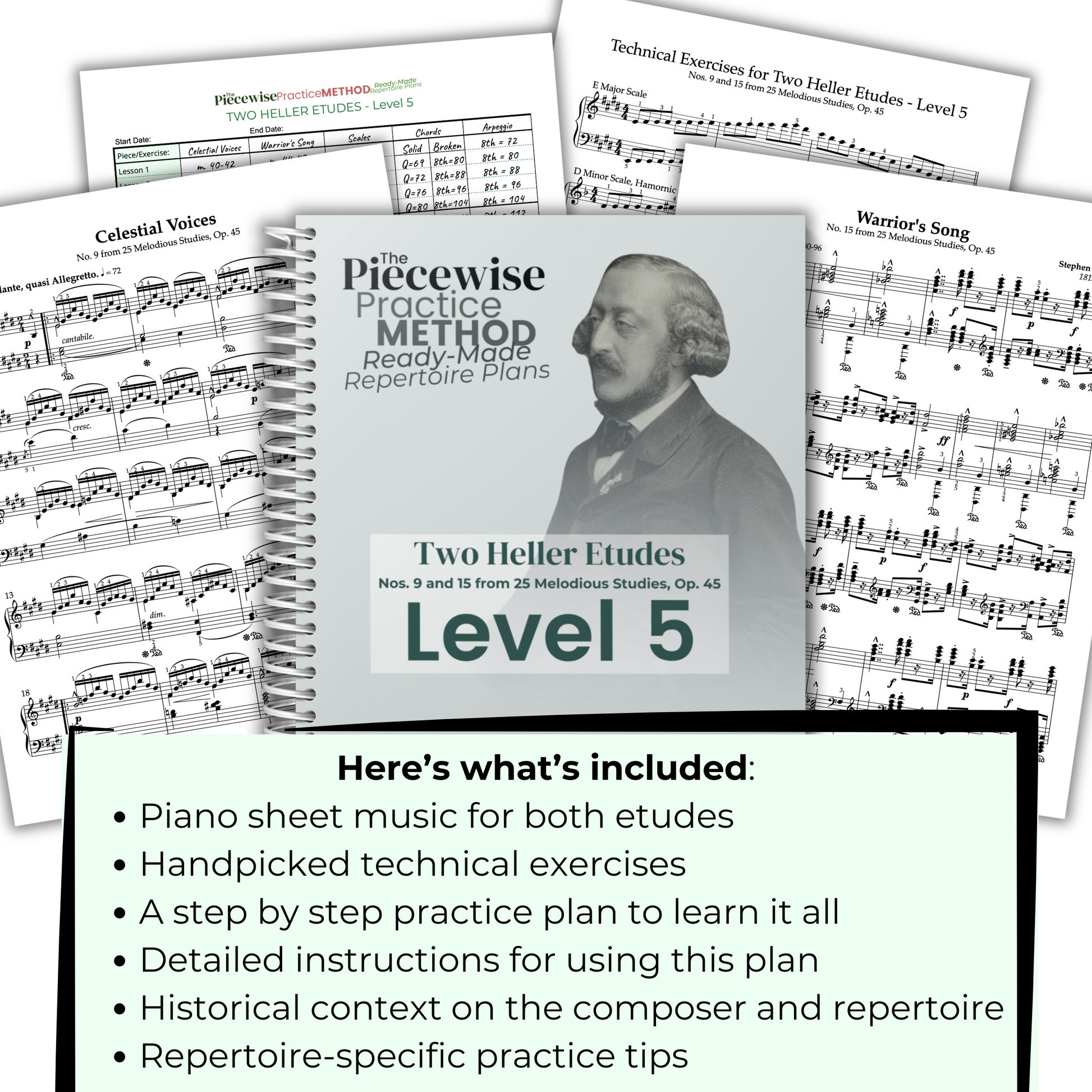 A 30-day, done-for-you practice plan to help you master two expressive Romantic-era etudes—complete with guided practice support, historical context, and piece-specific insights.