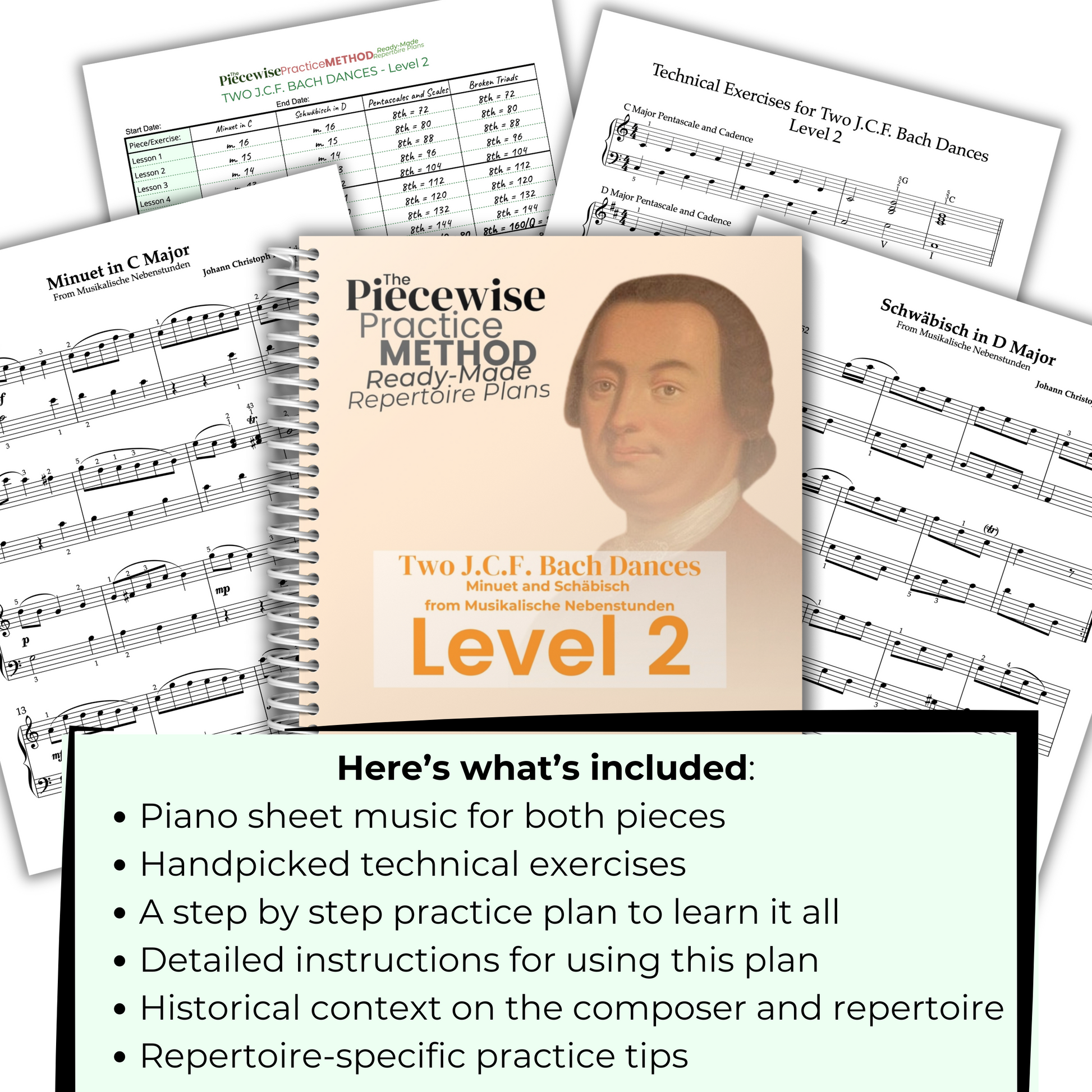 In this plan, you’ll learn two short works that offer both simplicity and style. The Minuet provides grace and phrasing practice; Schwäbisch brings playful rhythm and character. Perfect for players who want to build musicality through manageable, rewarding repertoire.